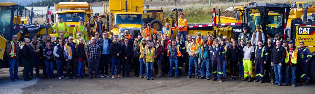 Before parting, the entire group took the time to pose for a group photo in front of two of the graders recently delivered to Williams Lake as part of fleet improvements DRM is making in all of its four service areas this fall. They are also looking forward to new International plow trucks arriving soon.