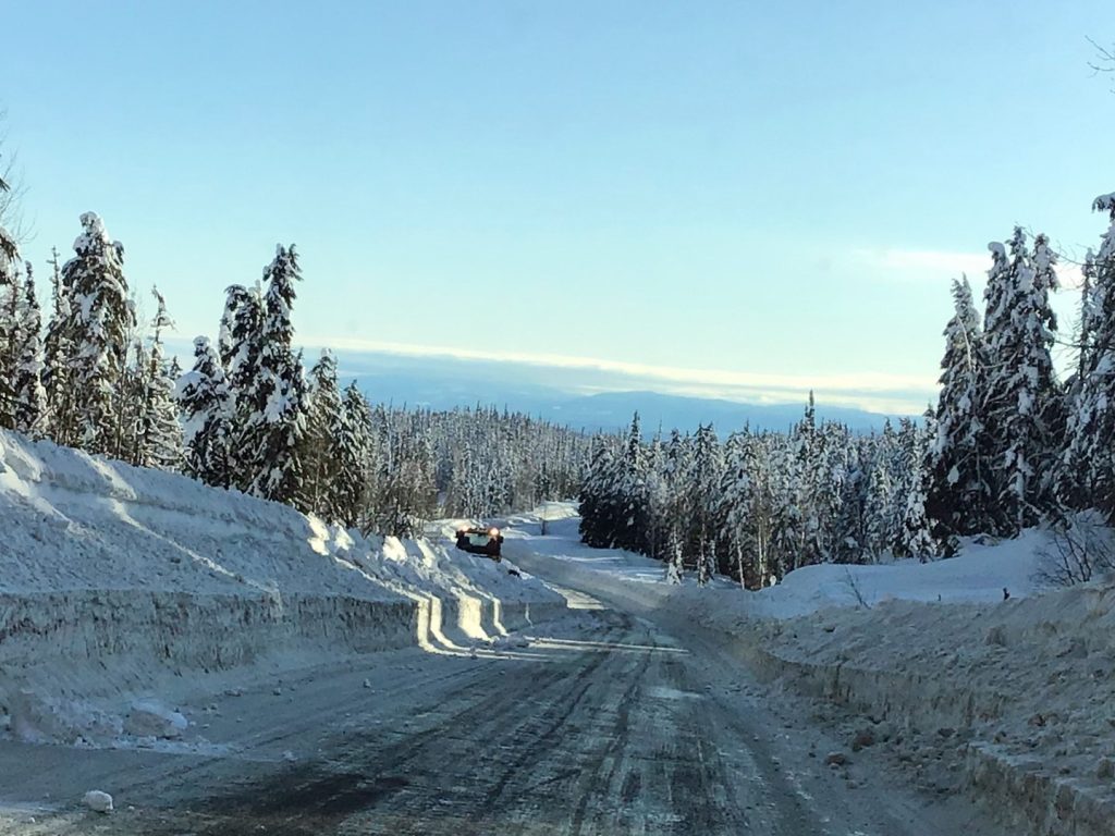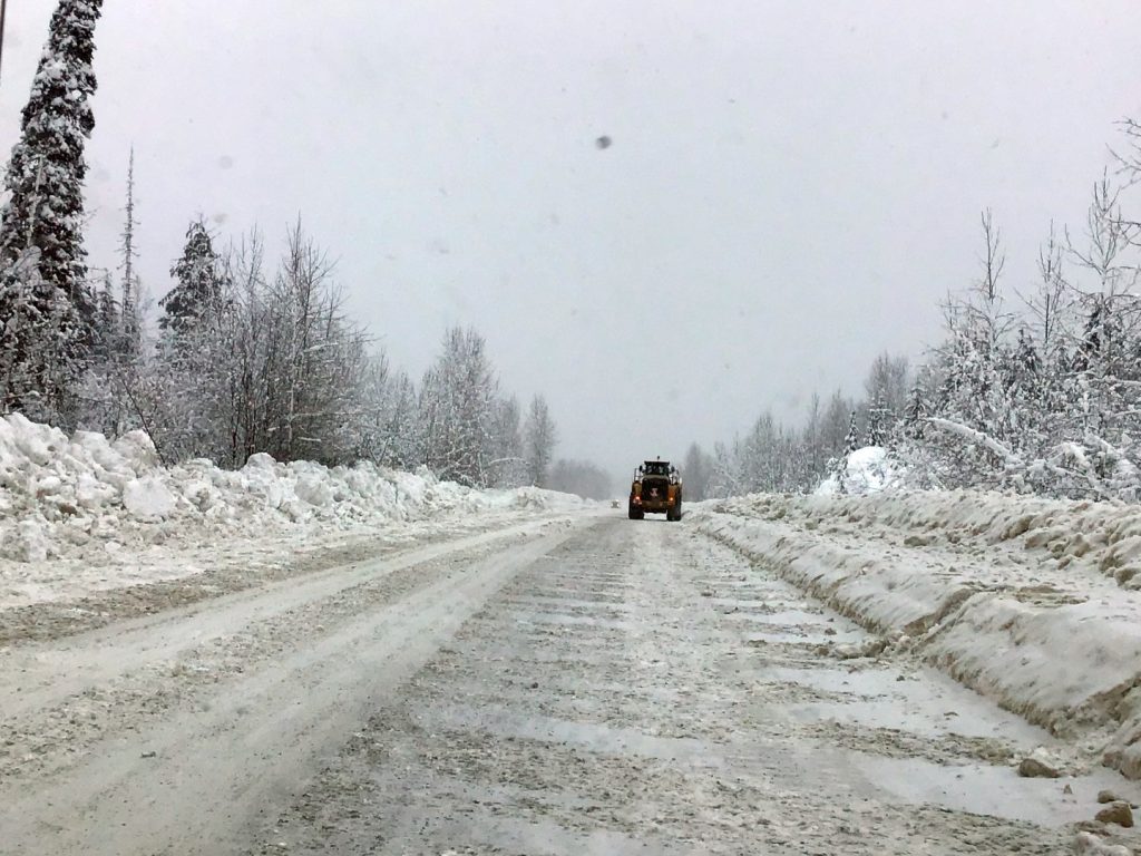 UPDATE – DRM crews are expecting to be completed on the south side of the Hanna brake check tomorrow, continuing to work their way north on Highway 37. Soucie Contracting’s Cat 980 loader is now daylighting south of Bell 1 and they also now have a grader cutting through c