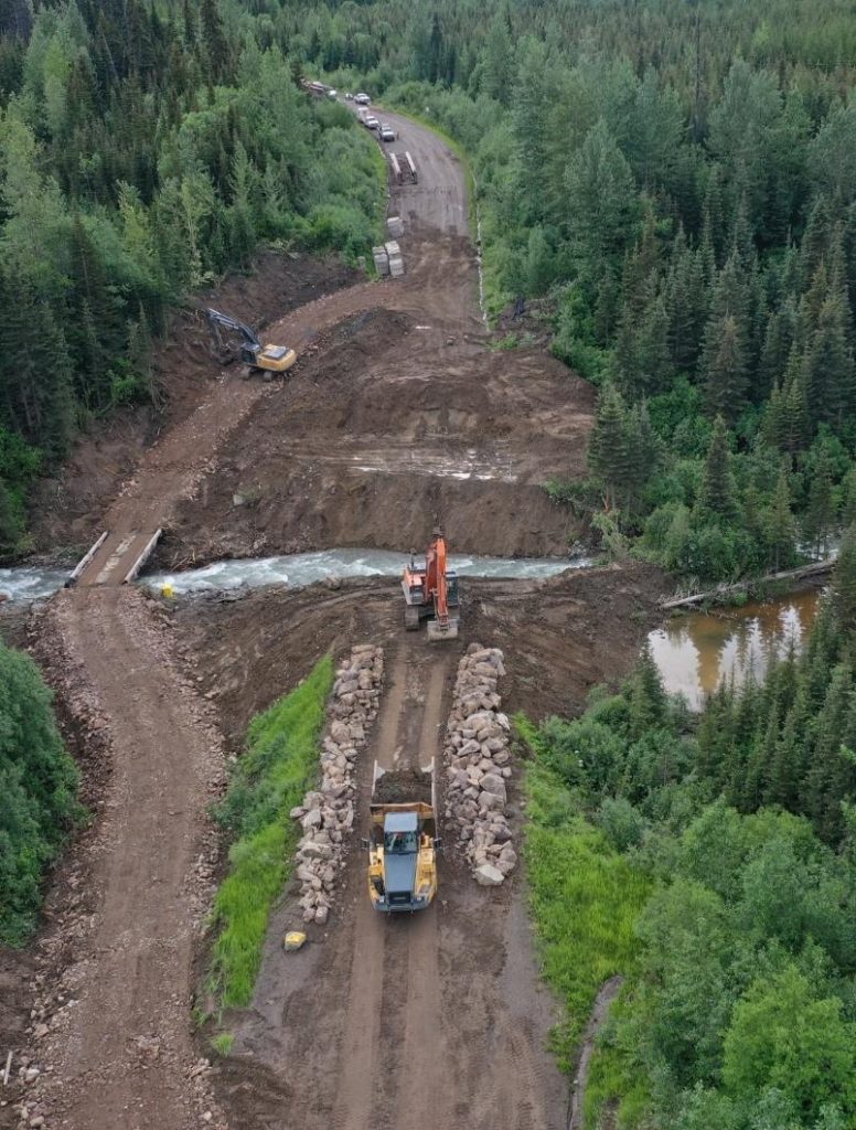 Creativity and having a history of great relationships allowed the Smithers and Fort St. John’s Dawson Road Maintenance crews to replace an old, wooden culvert with a sturdy new bridge on Babine Lake Road. Little Joe Creek runs underneath a section of Babine Lake Road rough